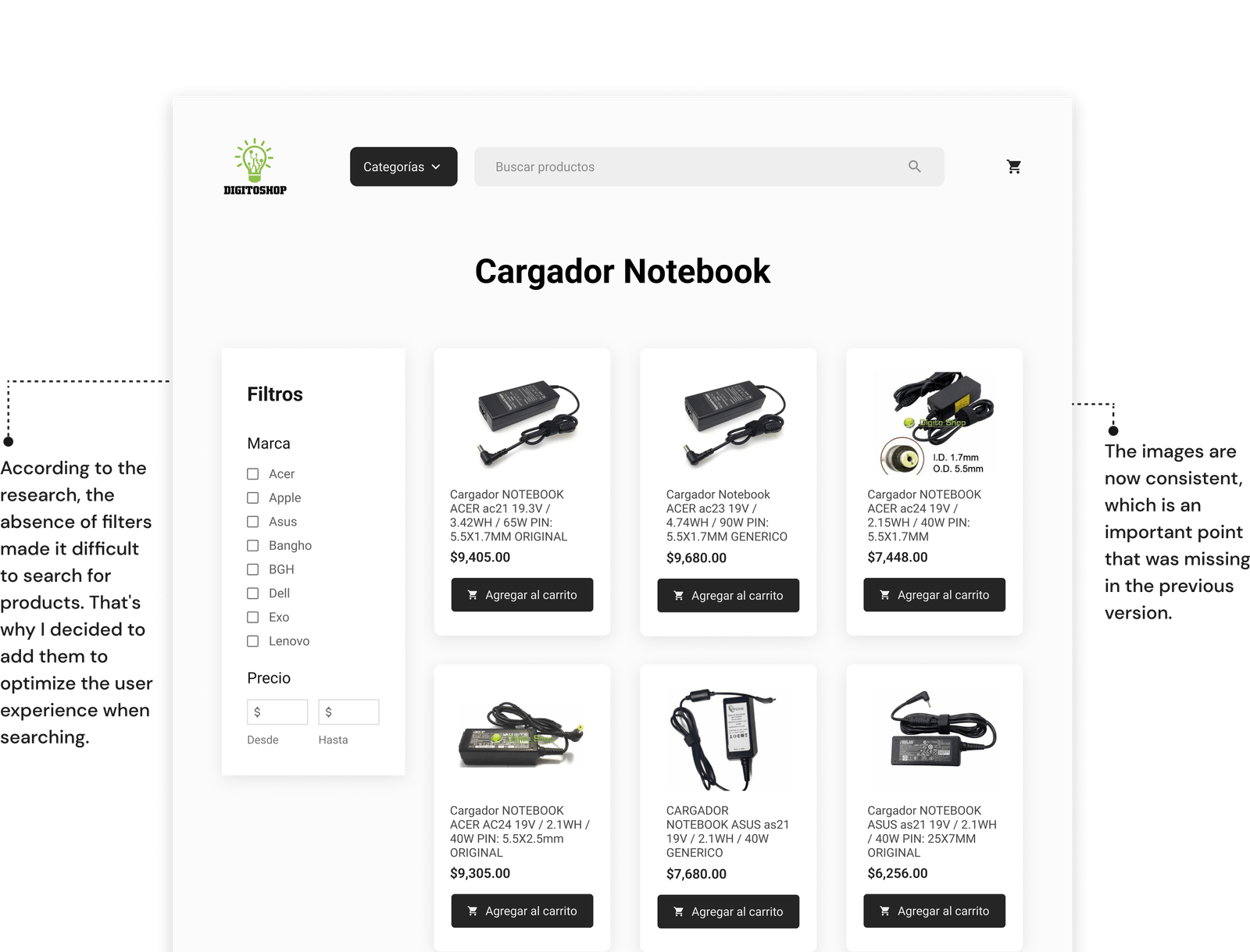 - Make sure that the list of products has the necessary filters to optimize the search